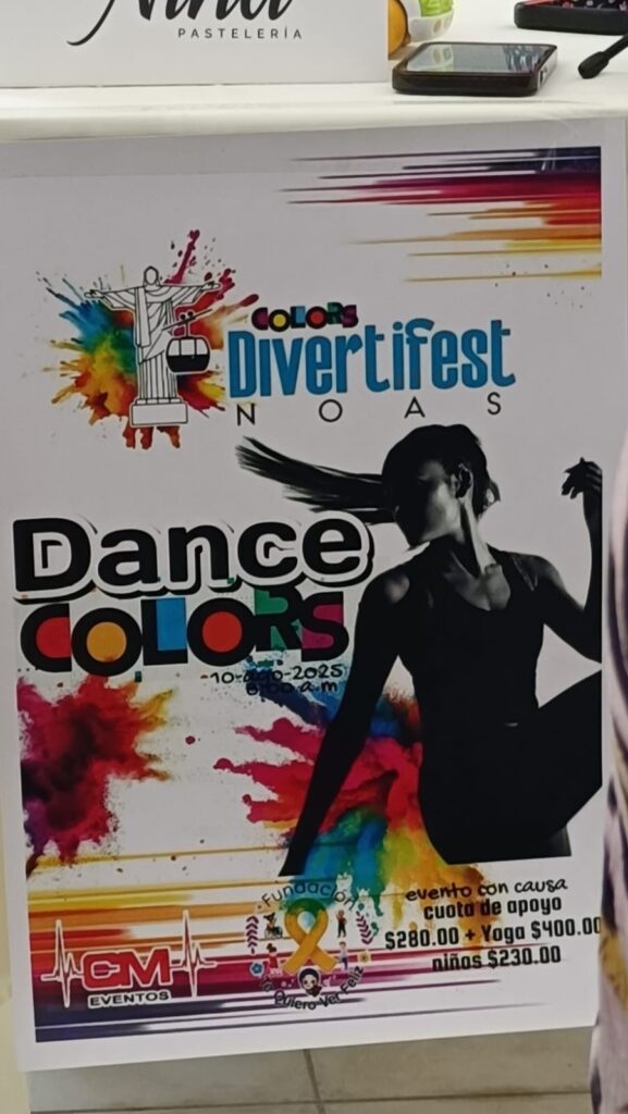 El Dance Colors iniciará a las 8:00 horas, con instructores motivando a participantes durante más de tres horas. La inscripción de 280 pesos incluye un kit y playera, y se pueden adquirir en la sede de la fundación. Durante el evento, se venderán aguas y aperitivos, con todas las ganancias destinadas a la tina.